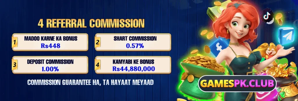 Despite playing casino or betting games, the GamesPK app also contains a referral program opportunity. We call it an opportunity as it is an easy way to earn money by inviting friends. You can share your referral link either by copying the URL or sharing it on social media. After your friend joins the platform, you will get rewards and commission on their play and money deposit. These commissions and rewards vary, like you will get 1% commission on the first deposit of your friend and 0.57% on every bet.